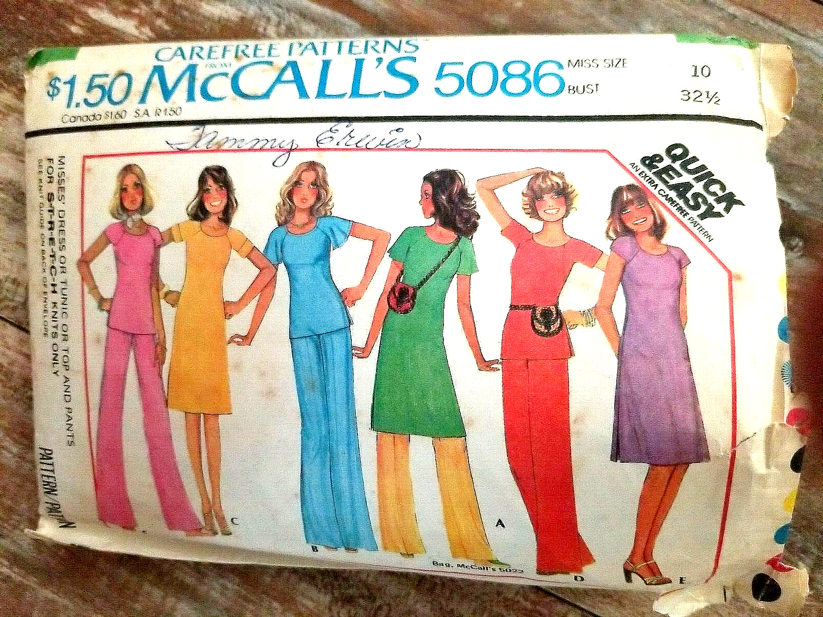 Mccall S Sewing Pattern 5086 Vtg 70 Misses Dress Tunic Top Pants Hippie Easy 10 Ebay